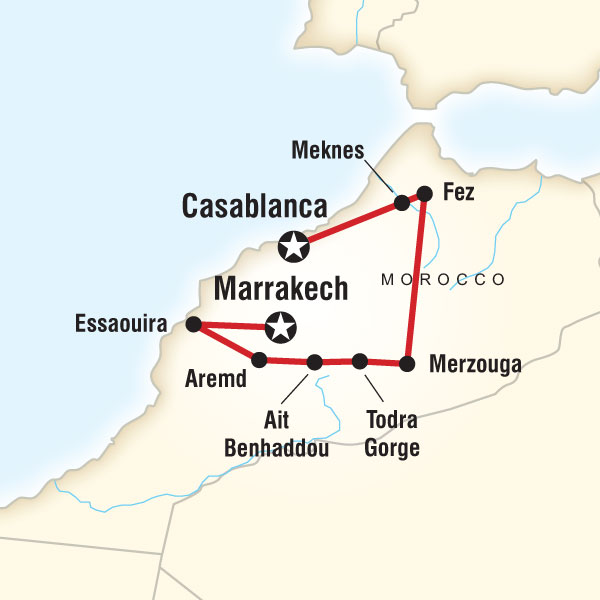 Please note, this tour does not spend any time in Casablanca. You may wish to come a day early in order to explore Casablanca's small medina, beachfront and classic examples of Art Deco architecture. Be sure to visit the spectacular Hassan II mosque. Entrance is only permitted via guided tours which operate from Saturday to Thursday (closed Fridays) at 09h00, 10h00, 11h00, and 14h00. Please refer to optional activity section of these notes for prices. These times are subject to change (particularly around Ramadan)please double check these times with your hotel.