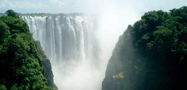 The Victoria Falls waterfalls occur in a country that is perfectly flat. From its source on the borders of the Democratic Republic of Congo, the Zambezi River meanders for 1300 km across the wooded plateau of Zambia, eroding for itself a shallow valley on its mild descent to the site of the falls. The river eventually found a weak spot on the lower lip of the surface over which it passed, and forced a passage which was steadily deepened into an exit gorge. During the last half million years the river has scoured out eight of these cracks across its bed. The Victoria falls occur where the river is 1688m wide, presents the spectacle of an average maximum of 550 million liters of water a minute tumbling over the lip of the trench in five main falls, the Devil’s Cataract, Main falls, Horseshoe Falls, Rainbow falls and the Eastern Cataract. The highest of these is Rainbow falls, on an average 108 m high. A peak flood sees 750 million liters of water in one minute hurtling over the falls.