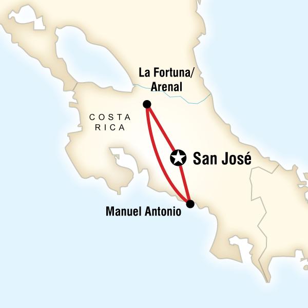 See two sides of Costa Rica's incredible natural playground. Get your fill of outdoor adventure around active Arenal Volcano, famous for everything from world-class rafting to rivers of volcano-heated hot springs and then check out Manuel Antonio—home to the country's most popular park. With pristine, protected beaches, awe-inspiring wildlife and some of the best nightlife in the country, it's easy to see why.